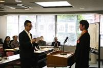 第36期生卒塾生に修業証・修了証授与(一人づつ塾長より手渡され、喜びもひとしおです。